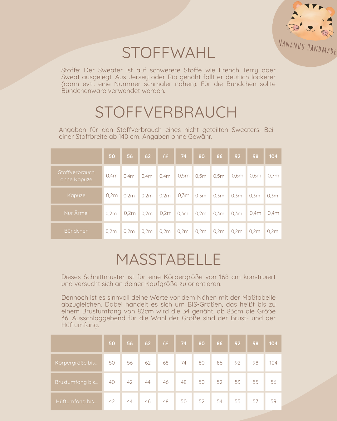 Schnittmuster in drei Formaten