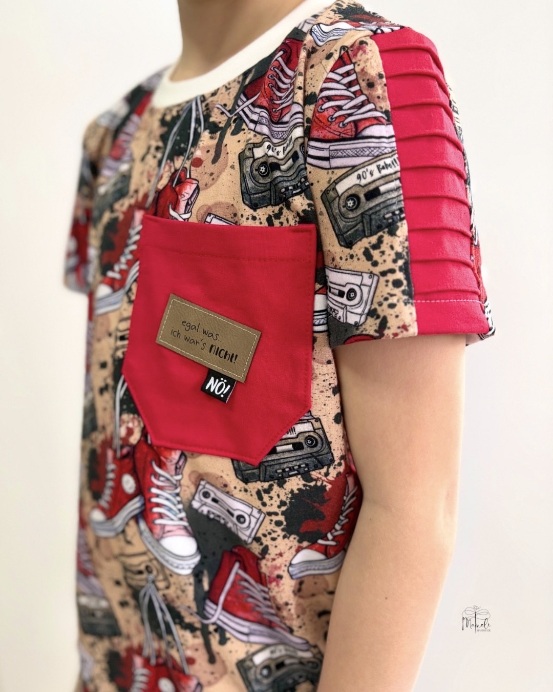 Genäht wird der Schnitt aus Jersey. Mit kleinen Größenanpassungen eignen sich auch Rippjersey oder French Terry.
