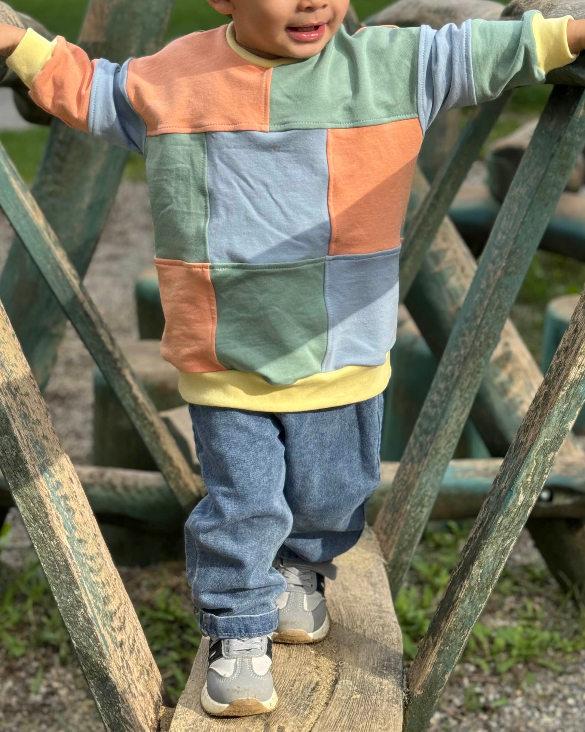 Der Patch It Up! ist ein locker sitzender Oversize-Pullover mit coolen Patchwork-Teilungen – perfekt für kleine Stoffreste oder stylishe Color-Blocking-Looks. Die Teilungen lassen sich easy abwandeln, sodass du ihn auch ganz schlicht nähen oder immer wieder neue Looks kreieren kannst. Mit Kapuze oder Halsbündchen, Bauchtasche oder Ärmelrüsche sind deiner Kreativität keine Grenzen gesetzt.